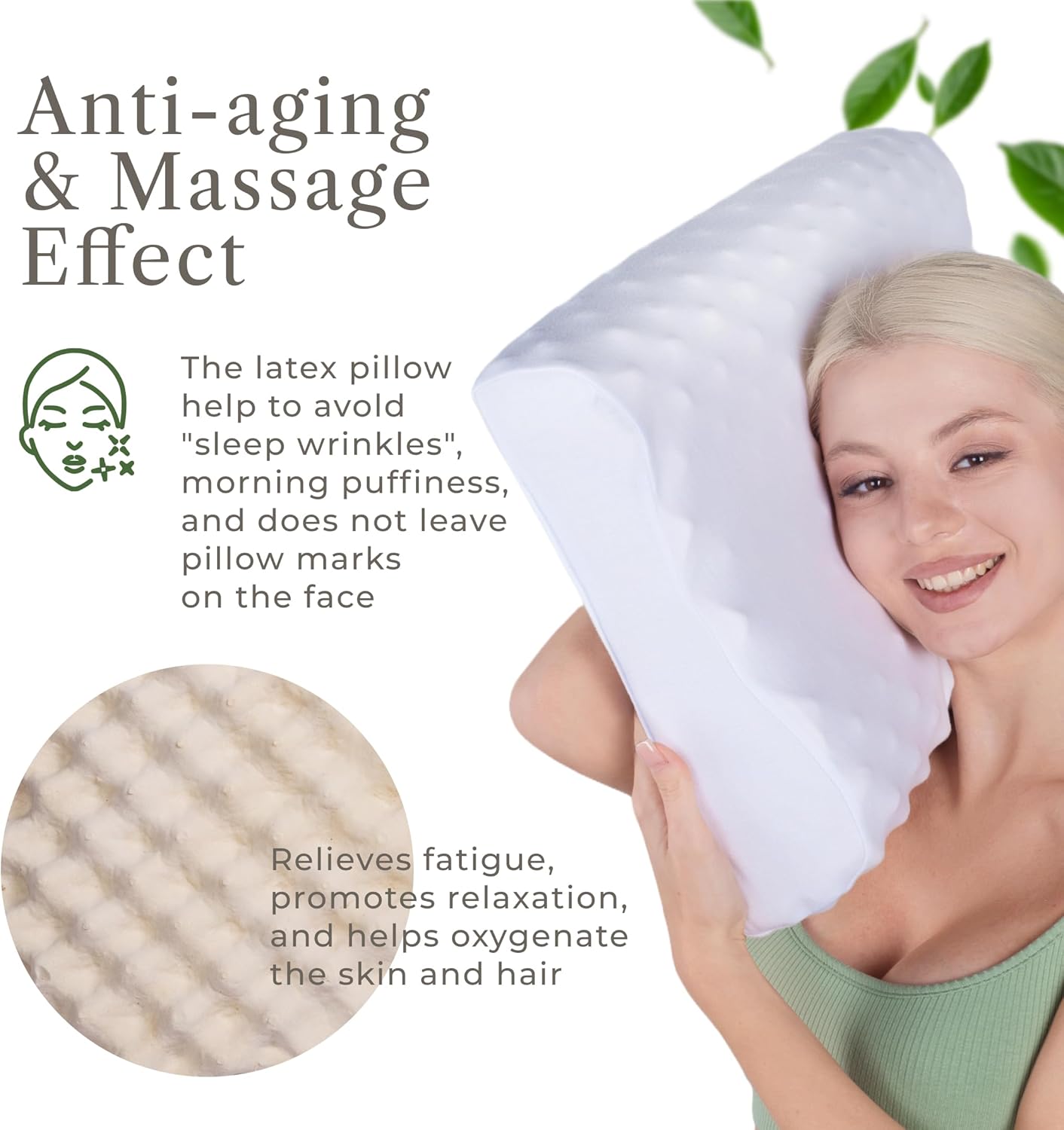 Wave Massage Latex Pillow – Contoured Cervical Neck Support with Acupressure Zones – 100% Natural Latex – Hypoallergenic & Breathable
