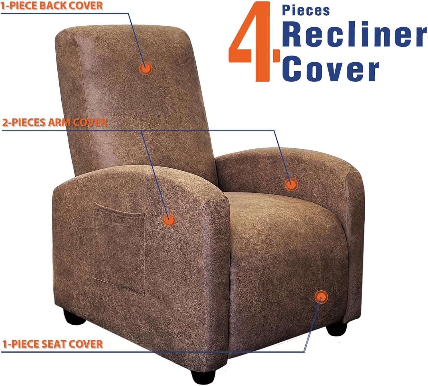 Leather-Like Elegance Meets Practicality: Crafted with premium stretchy spandex fabric, our 4-piece recliner chair covers feature a unique leather-like texture that combines style with substance. It's breathable, soft, eco-friendly, and non-pilling, offering a luxurious look without compromising on comfort or durability.