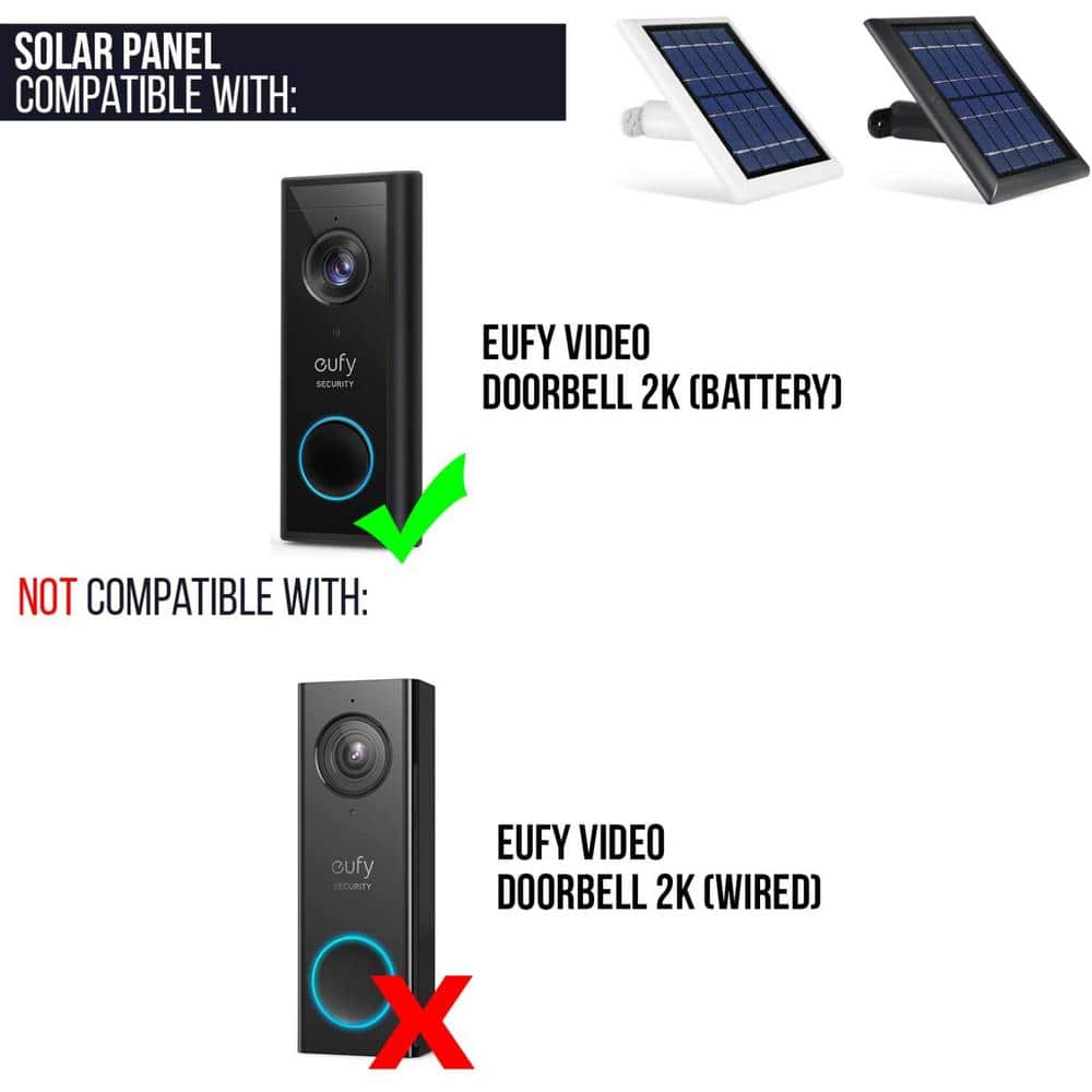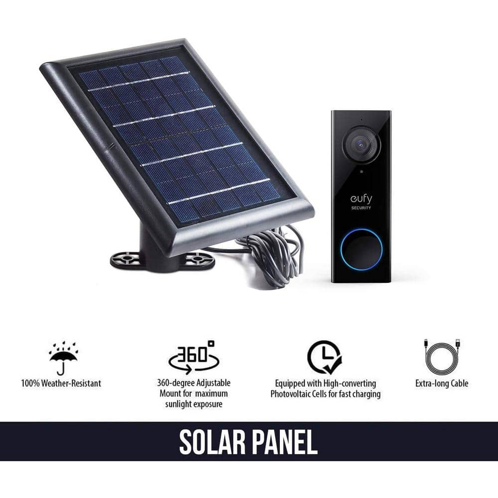 Weatherproof Solar Panel for Eufy Video Doorbell 2K (Battery-Powered) Continuous Charging for Maximum Efficiency, Black