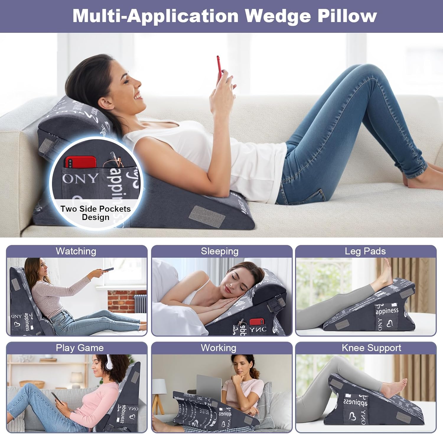 Your Relief Companion: Don't let pain steal your peace! this elevated pillow wedge help alleviate acid reflux, gerd, back pain, snoring, and post-surgery discomfort
