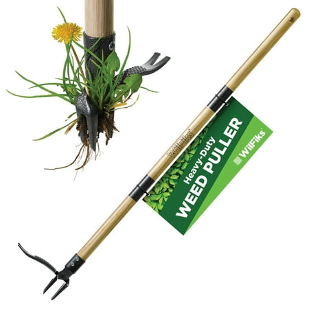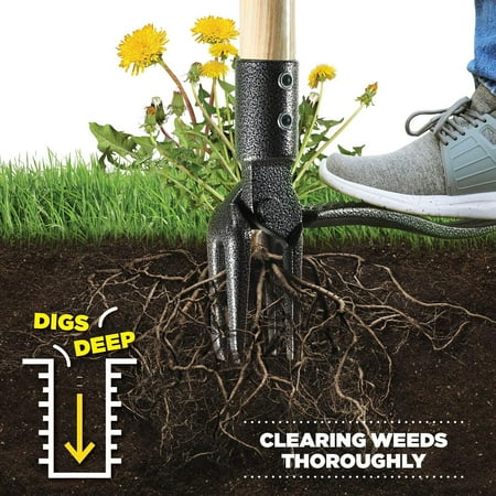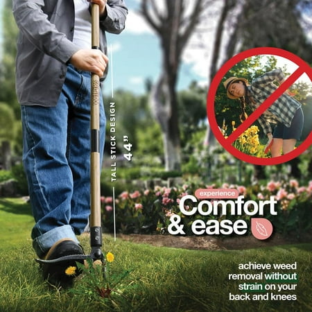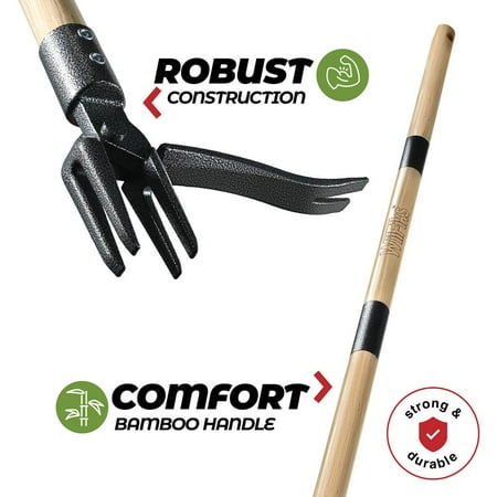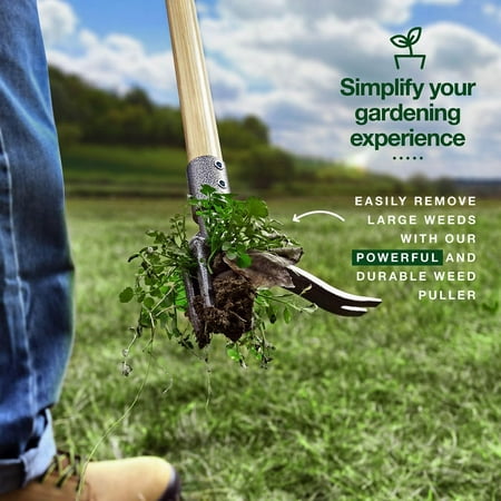► EASY TO USE: With our Weed Puller Tool, gardening becomes a joyous experience for seniors and enthusiasts alike. Featuring a 44” tall comfortable stick wood bamboo handle, it offers effortless weed removal without strain. Designed with elderly comfort in mind, our tool ensures a pleasant gardening experience. Simply stand tall and let our user-friendly design do the work for you. Bending or kneeling becomes a thing of the past. ► DURABLE CONSTRUCTION: Our 4-Claw Head Design Weed Pulling Tool is crafted from durable stainless, high-strength steel. This innovative tool is engineered to tackle weeds on various soil types with ease. Its robust design ensures reliable performance, making it the perfect companion for maintaining a pristine garden. Say goodbye to stubborn weeds and hello to effortless gardening! ► INNOVATIVE DESIGN: Our Weed Remover Tool features a groundbreaking foot pedal design, offering enhanced leverage for effortless weed extraction. With just the right amount of force, it penetrates the soil and grips the weed, roots and all, preventing regrowth. Perfect for gardens, backyards, and front yard landscaping, it's the ultimate tool for hassle-free weed removal. ► EFFORTLESS EXTRACTION: Using our Stand Up Heavy Duty Weeder Tool, center the tool directly above the weed, firmly press the claw into its center while applying foot pressure to penetrate the ground, then gently lean the weeder towards the lever side to activate it, allowing the claw to grip and remove the weed, enabling you to achieve a pristine garden. ► EASY STORAGE: Our Weeding Tool is as clever in storage as it is in action. Its handle ingeniously splits into three parts, ensuring compact storage even in the smallest of spaces. Alternatively, utilize the built-in hanging hole for quick and tidy storage on hooks or pegs. With its versatile design, our weed puller effortlessly combines convenience and efficiency, making gardening a breeze from start to finish.