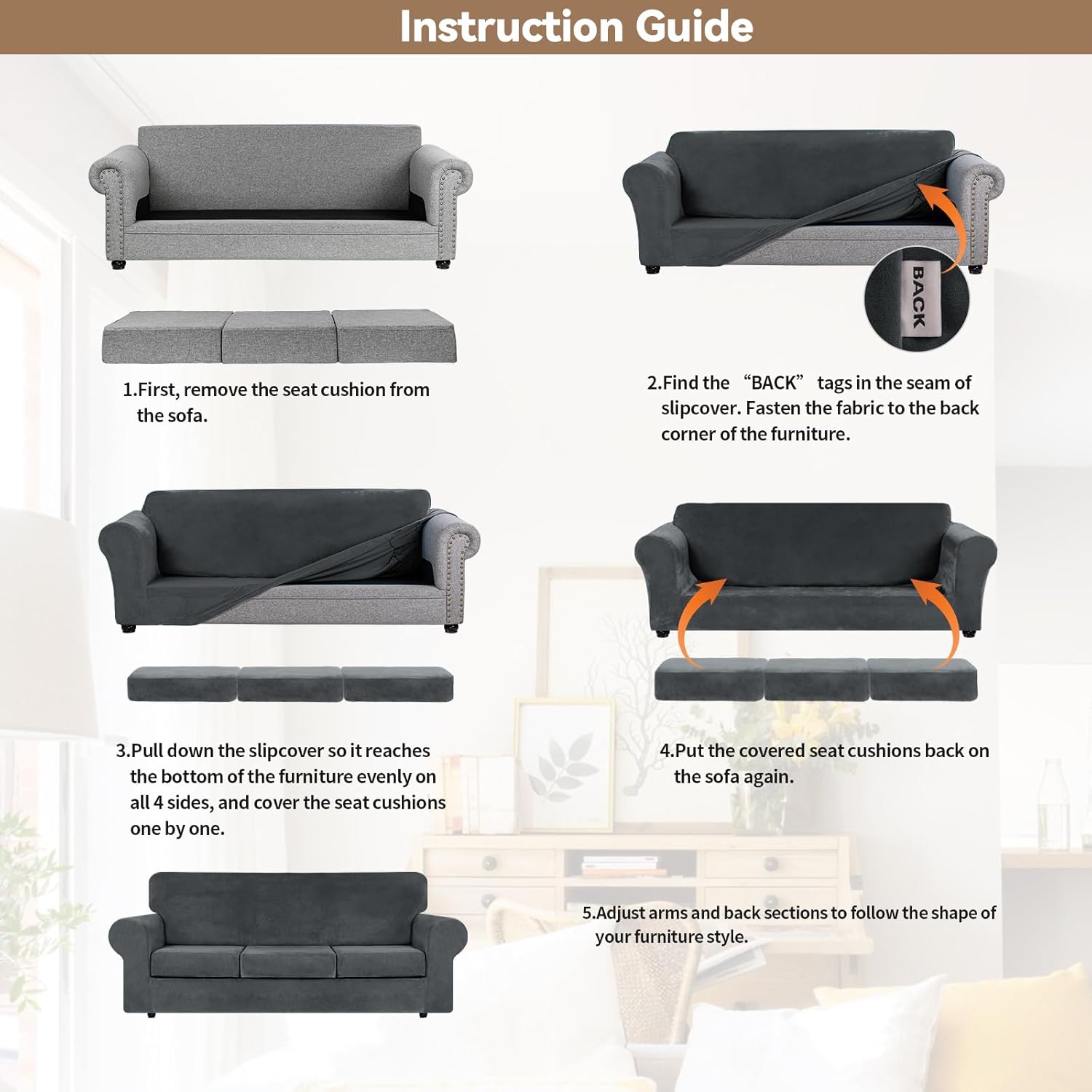 The sofa cover is crafted from velvet fabric, soft touch and super stretch. Our couch cover not only protect your furniture from daily wear and tear, but also give your worn-out sofa a new look
