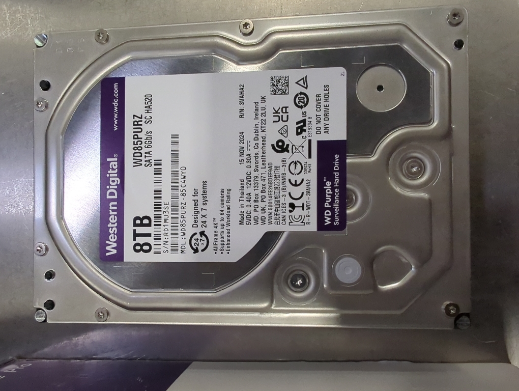 Western Digital 8TB WD Purple Surveillance Internal Hard Drive HDD - SATA 6 Gb/s, 256 MB Cache, 3.5" - WD85PURZ