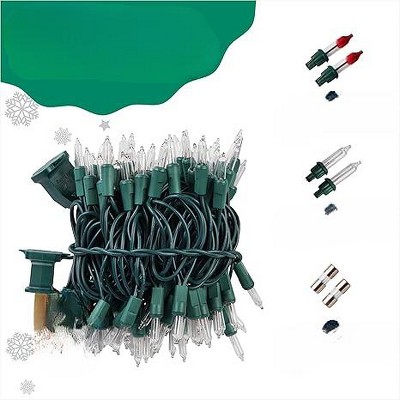 50 clear Christmas lights with 10 feet of green wire; one flashing bulb for twinkling effect