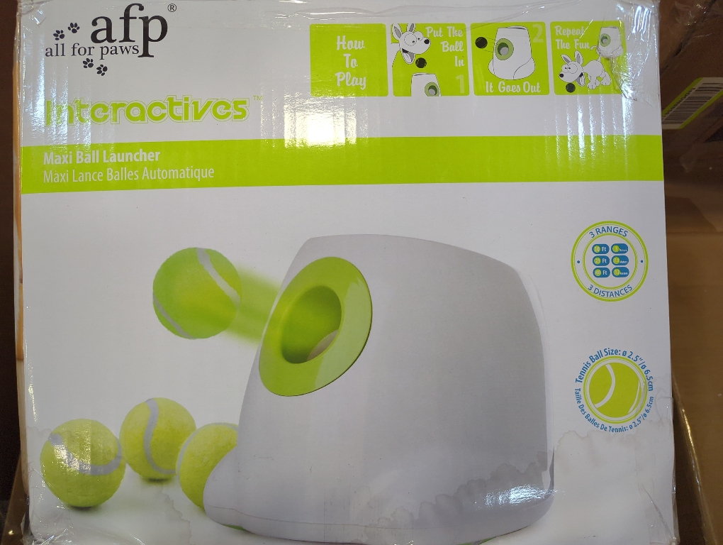 White ALL FOR PAWS Automatic Ball Launcher for Dogs Interactive Puppy Pet Ball Outdoor Thrower Fetch Machine, 6 Balls Included (2.5 inch) for Medium to Large Dogs, Rechargeable Battery