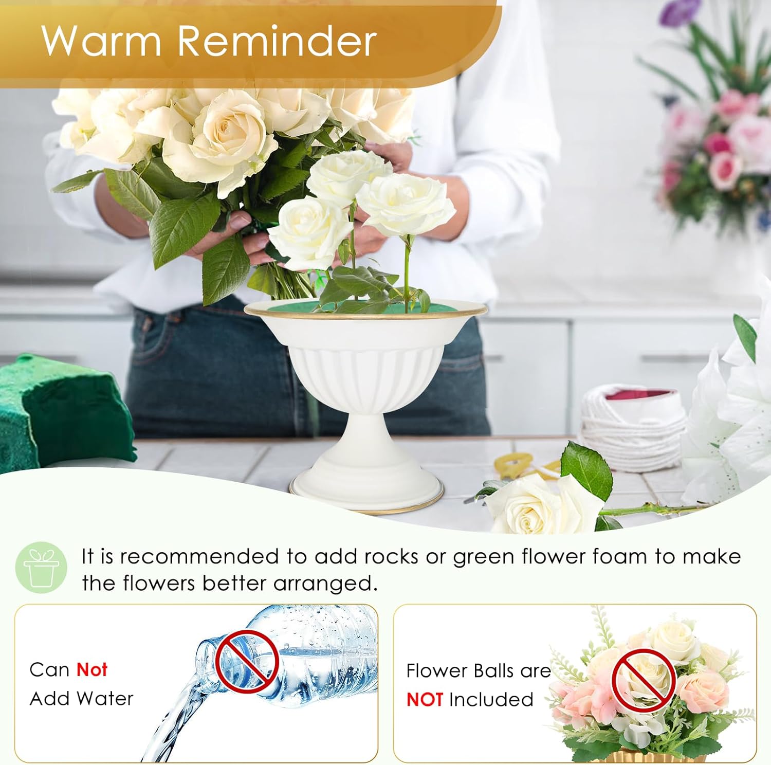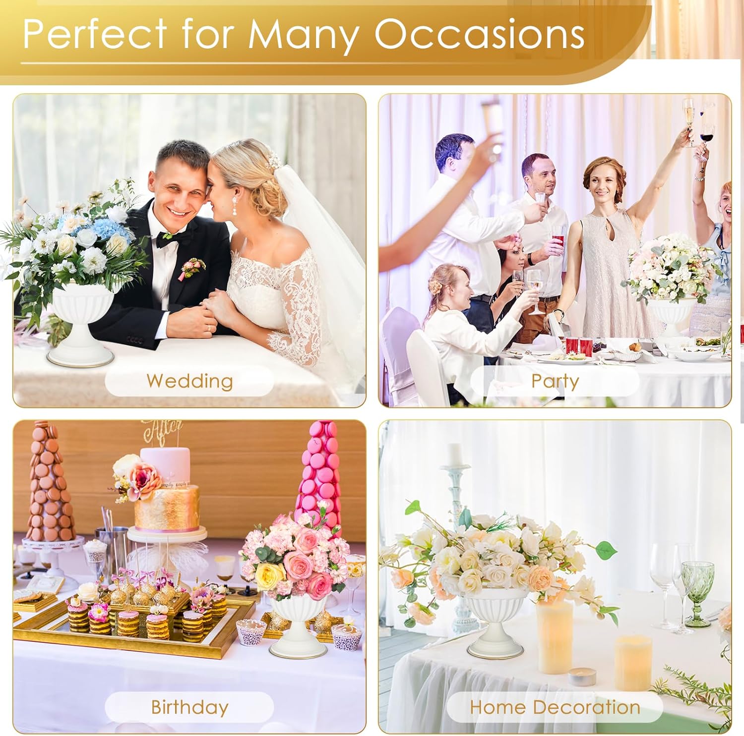 QUALITY AND REUSABLE: Our compote bowl for flowers is made of high-quality metal, sturdy, durable, and rust resistant. Through multiple processes such as die-casting, burnishing, and polishing makes the surface of our white pedestal for flower arrangements rich in texture and luster. Floral arrangements are reusable and can also be used as daily home decoration after the event, adding rocks and green floral foam to perfectly match the flowers.
