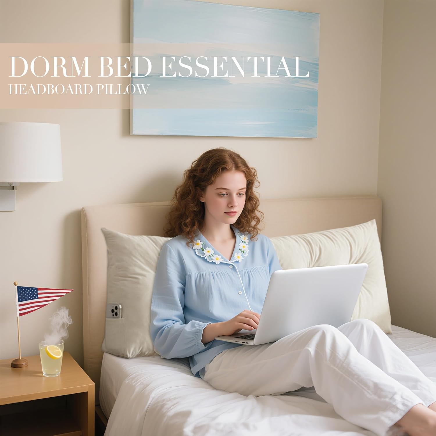 【High-Quality Materials】: CNSMAK triangular headboard pillow is made of premium quality velvet plush cover and high-quality PP cotton inner, high density and resilience that give you a long-lasting soft comfort when leaning against the wedge headboard pillow;white headboard twin xl is an essential for your dorm room