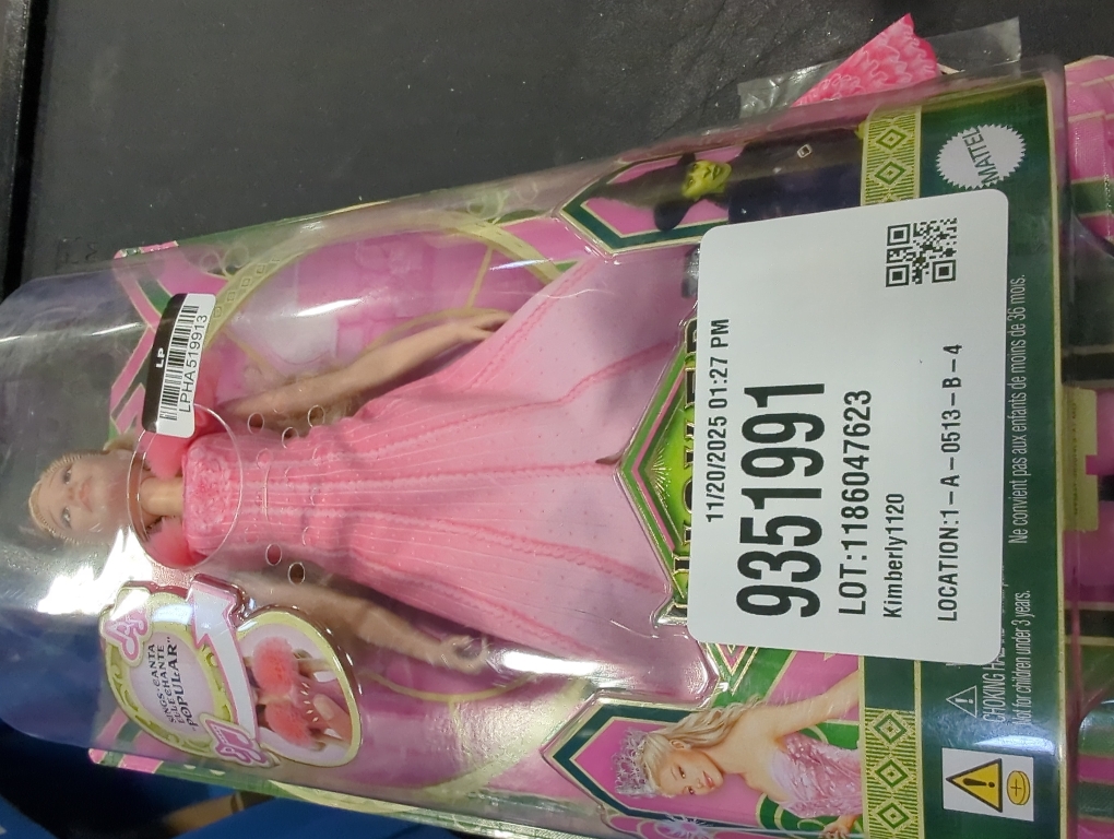 The most popular girl in Oz is here, and she's ready to sing Inspired by Universal Pictures' Wicked, the singing Glinda fashion doll captures the loveable, memorable moment from the film. Press the button and sing along with clips of her iconic song, 'Popular'. The kind-hearted character wears a removable, soft pink gown accessorized with hair clips and shoes. Her long, blonde hair completes the movie look for endless styling fun Glinda doll makes a charming gift for fans who will want to sing along. Dolls cannot stand alone. Colors and decorations may vary. WARNING: CHOKING HAZARD - Small Parts. Not for children under 3 years. Ages: 4 years and up. Inspired by Universal Pictures' Wicked, the singing Glinda fashion doll brings the music to life.. Sing 'Popular' along with Glinda press the button to hear one 15-second clip, then press it again to hear a second 15-second clip.. Glinda doll wears a soft, removable, pink ombre dress with puff sleeves and features her long blonde hair use her hair clip accessories to create even more Glinda-fied styles and looks.. Highlighting the magic of sisterhood and friendship, Wicked dolls make an inspiring gift for kids to play out their biggest dreams.. Fans can collect their favorite characters to recreate scenes and make up their own storylines and adventures. Each sold separately, subject to availability.. Includes 1 Singling Glinda fashion doll wearing removable dress, hair clips, and shoes.. Requires 3 AG13 (LR44) Button Cell Batteries (Included). No assembly required. Plastic, polyester. Spot clean. Imported