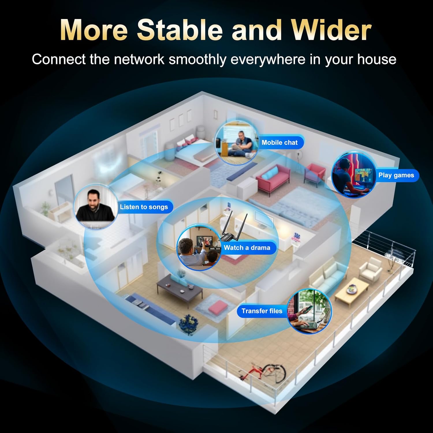 Super-Fast 1300Mbps USB WiFi Adapter - wifi adapter provides long-range and lag-free and stable wifi connections, Upgrade your PCs or laptops to 802.11ac standards which are three times faster than Built-in wireless adapter speeds.