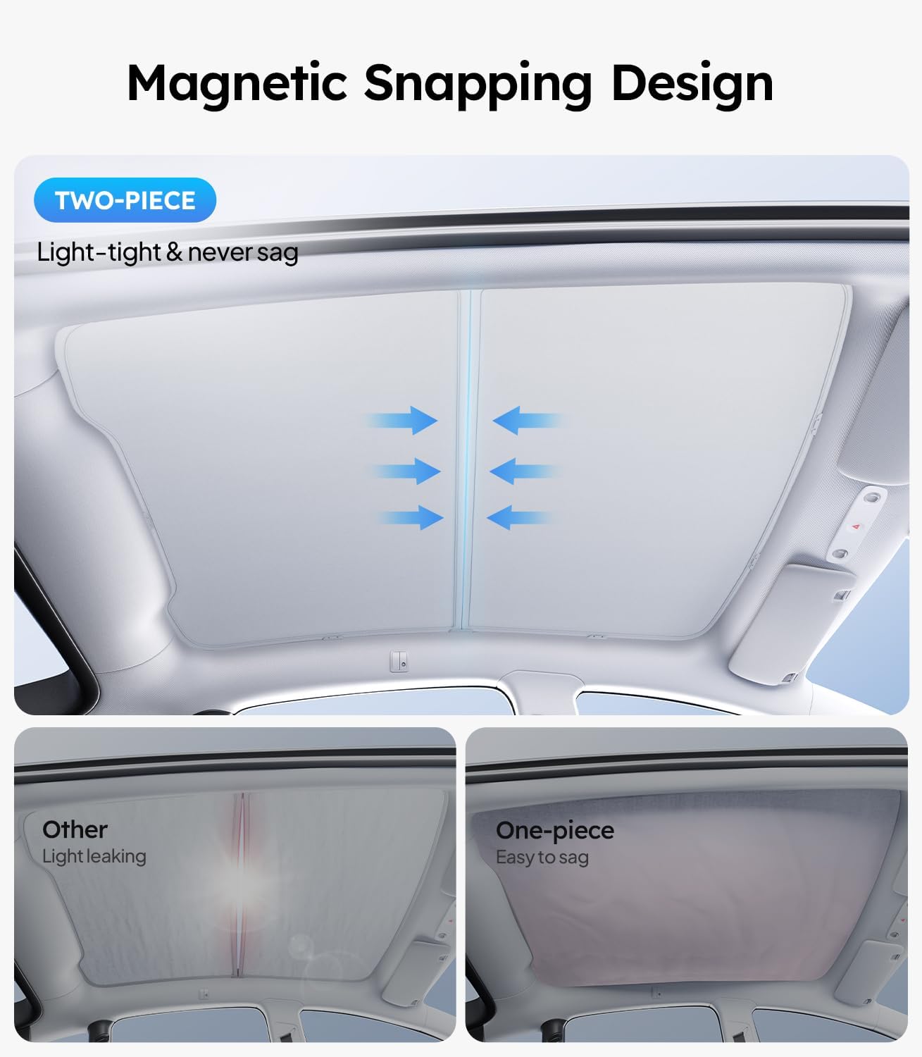 [Seamless Integration, Like a Glove] Wigoo Tesla Model Y Glass Roof Sunshade is custom-fit for the New Model Y Juniper. molded precisely to match the original car’s dimensions. Seamlessly integrated with the roof, even during long drives, you’ll scarcely notice its presence, underscoring our competitive edge over other products. We exclusively craft products geared towards enhancing the overall experience.