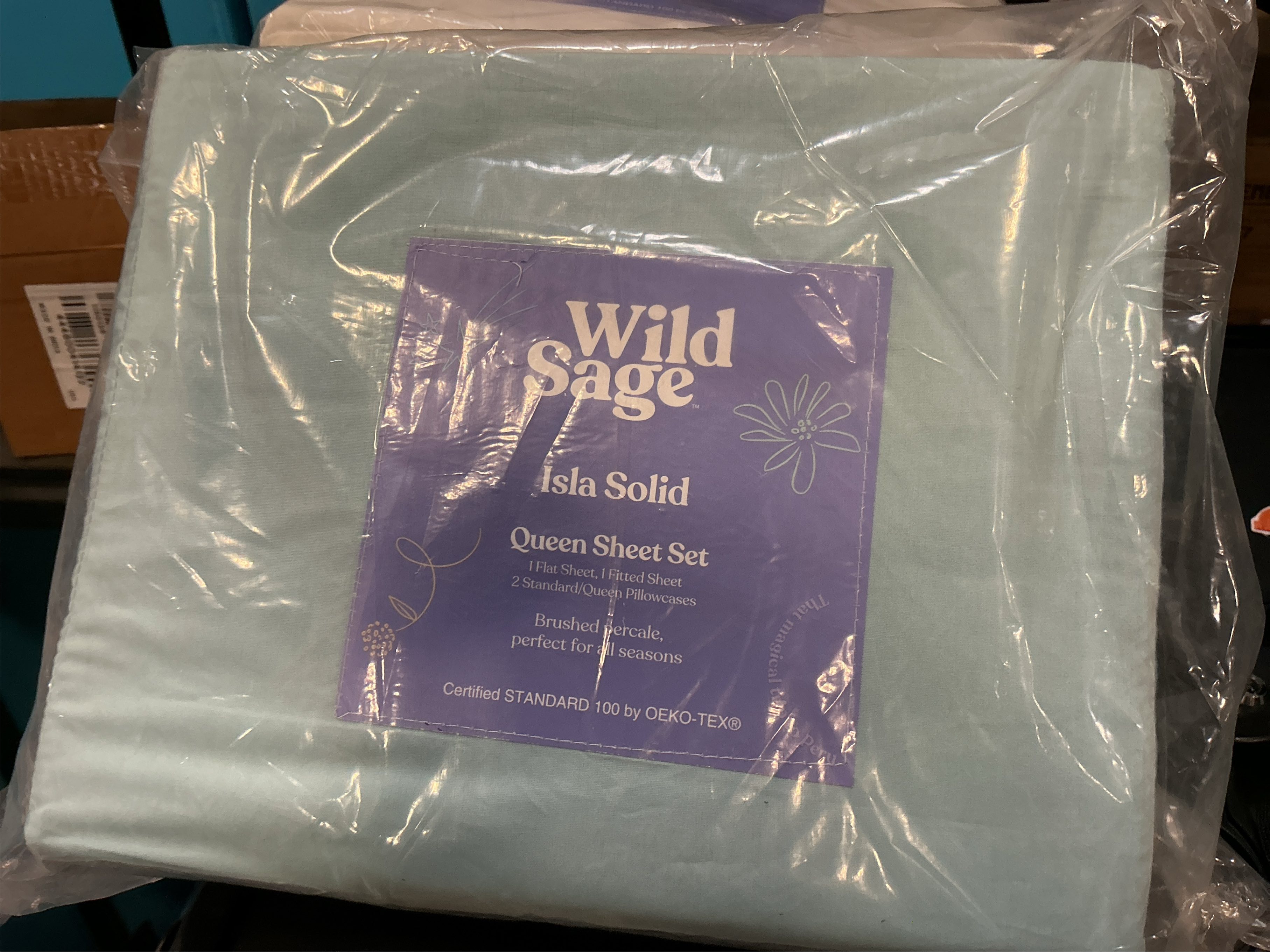 Wild Sage Brushed Cotton Percale 300-Thread-Count Queen Sheet Set in Strato Blue