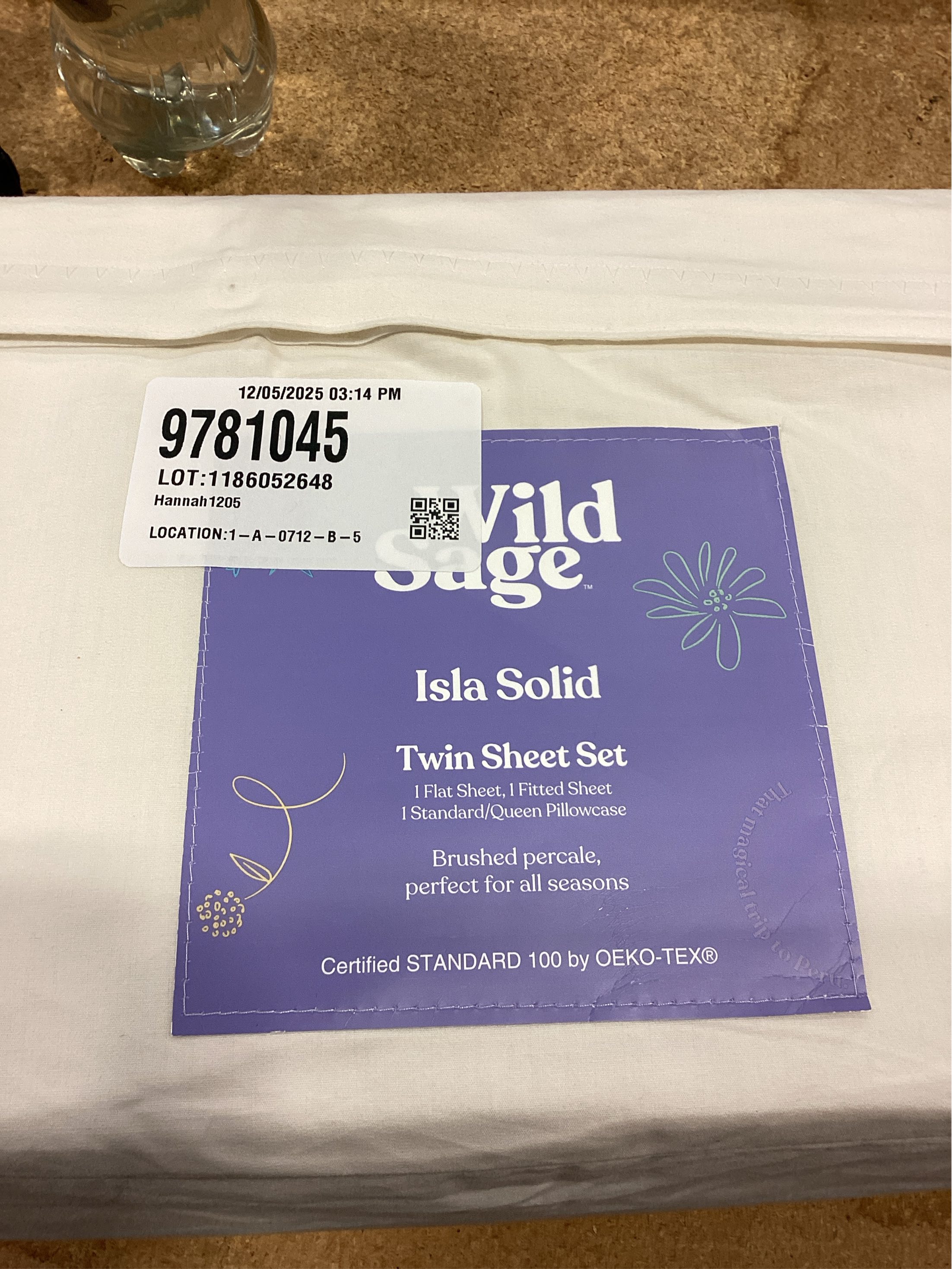 Wild Sage Brushed Cotton Percale 300-Thread-Count Twin Sheet Set in Coconut Milk