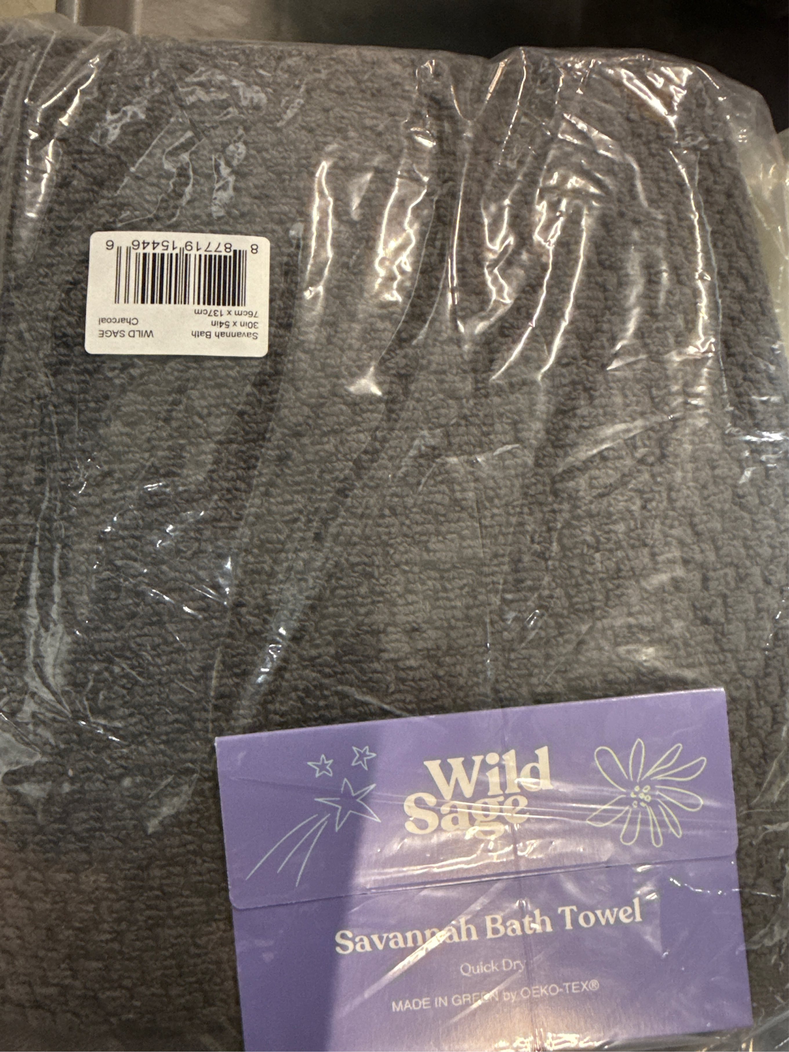 Wild Sage Savannah Quick Dry Solid Bath Towel in Charcoal - set of 3