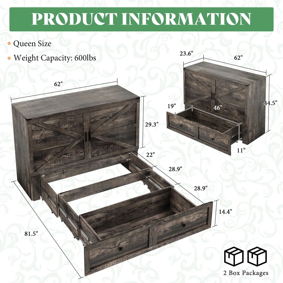 Wilkinson Farmhouse Full Murphy Bed with Large Storage Drawer & Charging Station, Gray