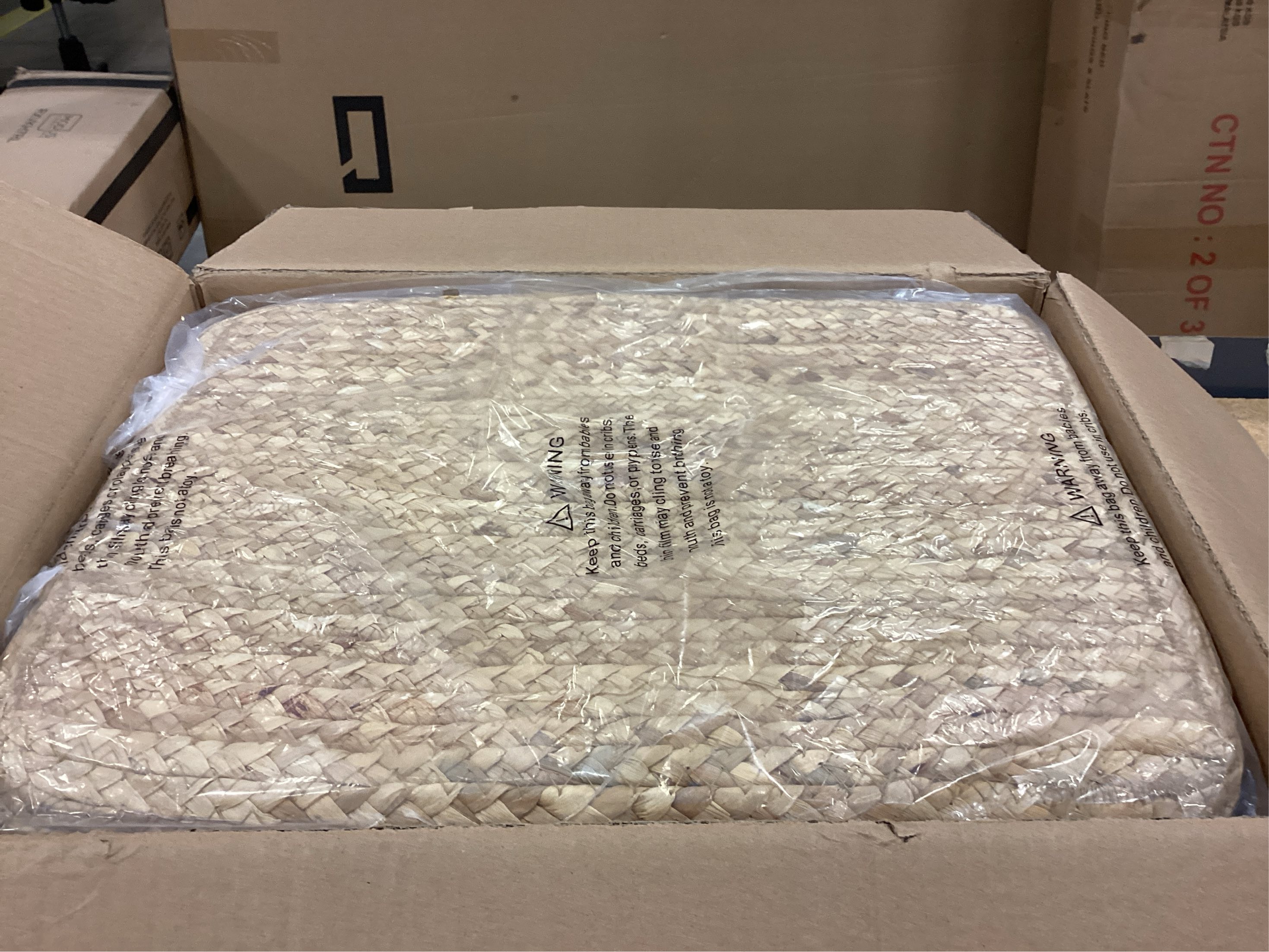 Wimarsbon Natural Seagrass Footstool Ottoman Rectangular Footrest Pouf Ottomans with Wooden Legs Hand Weave Step Stool for Living Room Bedroom Entryway Blue