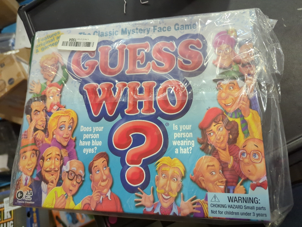 Beloved 1980's version of the classic mystery face game! There's a mystery person on your opponent's card. Can you find the matching face in the crowd. Start with your game full of silly-looking characters. Then ask the right questions to eliminate the wrong faces. Does your person have blue eyes? Is your person wearing a hat? Once you're down to a face or two solve the mystery by guessing who.