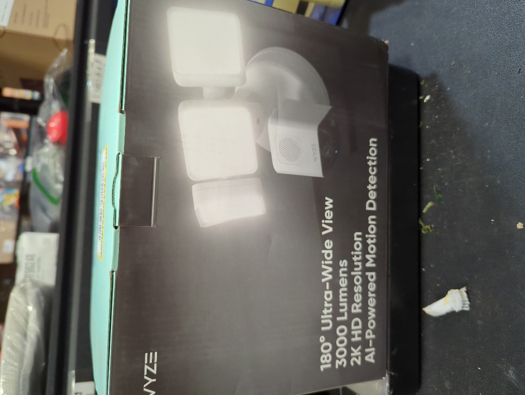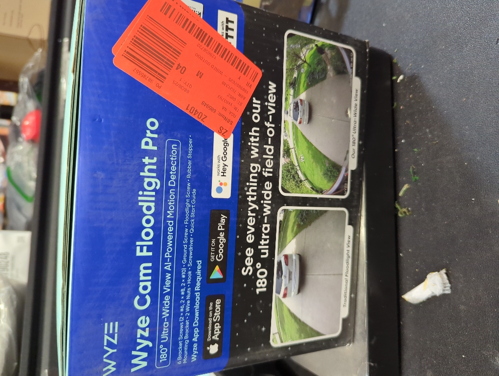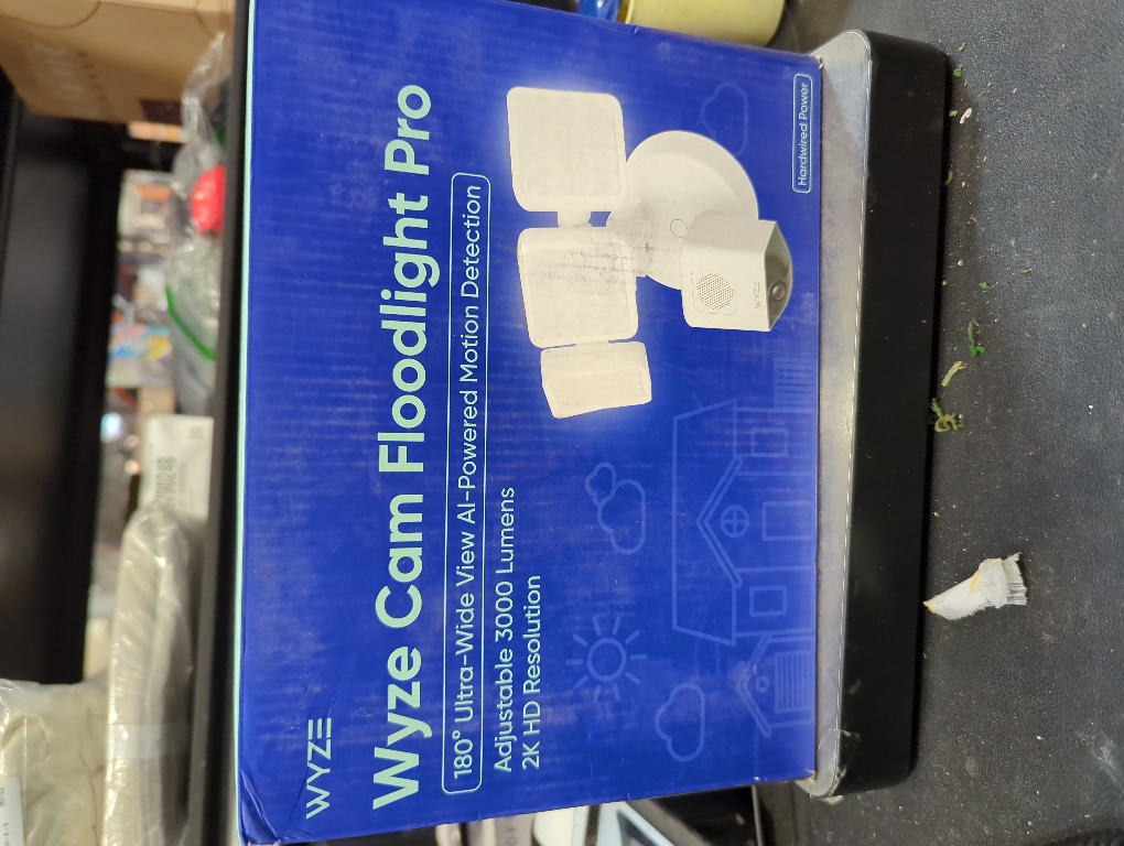 Wyze Cam Floodlight Pro combines a 180° wide-angle lens and 2.5K QHD video so you can see your yard end-to-end in more detail than ever. It relies on evolutionary onboard AI computer vision to detect motion and turns on the adjustable 3,000 lumen LED lights only from objects you select, like people and vehicles. In other words, we created a high-powered security camera with bright lights that thinks and responds like a personal home security guard-no donuts required.. Camera Connection: Wireless Cameras. Camera Product Type: Standard. Camera Resolution: 4MP. Camera Technology: IP. Camera Type: Floodlight. Color Family: White. Color/Finish: White. Connectivity: Wireless (Wireless Network Transmission). Features: 2-Way Audio,Built-in Flood Light,Built-in Microphone,Built-in Speaker,Smartphone Compatible,Wall Mountable,Weather Resistant,Zoom. Field of View: 180 Degrees. IP Rating: Weather Resistant. Image Sensor Type: CMOS. Included: Mounting Hardware. Indoor/Outdoor: Outdoor. Lumens: 3000. Microphone: Two-Way Audio. Night Vision Distance (ft.): 30. Night Vision Range (ft.): 30 ft. Pack Size: 1. Power Options: Hardwired. Power Source: Hardwired. Power Source: Hardwired. Product Weight (lb.): 2.85 lb. Recording Storage: Cloud,SD Card. Remote Access: Remote Access. Requires Hub?: No Hub Required. Resolution: 4MP (1440p). Returnable: 90-Day. Rotation Direction: Fixed. Smart Device Enabled: Enabled. Smart Home: Smart Home Enabled. Smart Home Protocol: Wi-Fi. Storage Capability: Cloud,SD Card. Video Signal: Digital. Voice Control Hub Required: No Hub Required for Voice Control. Voltage (V): 120 V. Works With: Alexa, Alexa, Google, Google Assistant, IFTTT. Certifications and Listings: UL Certified. Product Depth (in.): 9.09 in. Product Height (in.): 7.76 in. Product Width (in.): 10.16 in. Power Source: Hardwired. Indoor/Outdoor: Outdoor. Camera Connection: Wireless Cameras. Smart Home Protocol: Wi-Fi