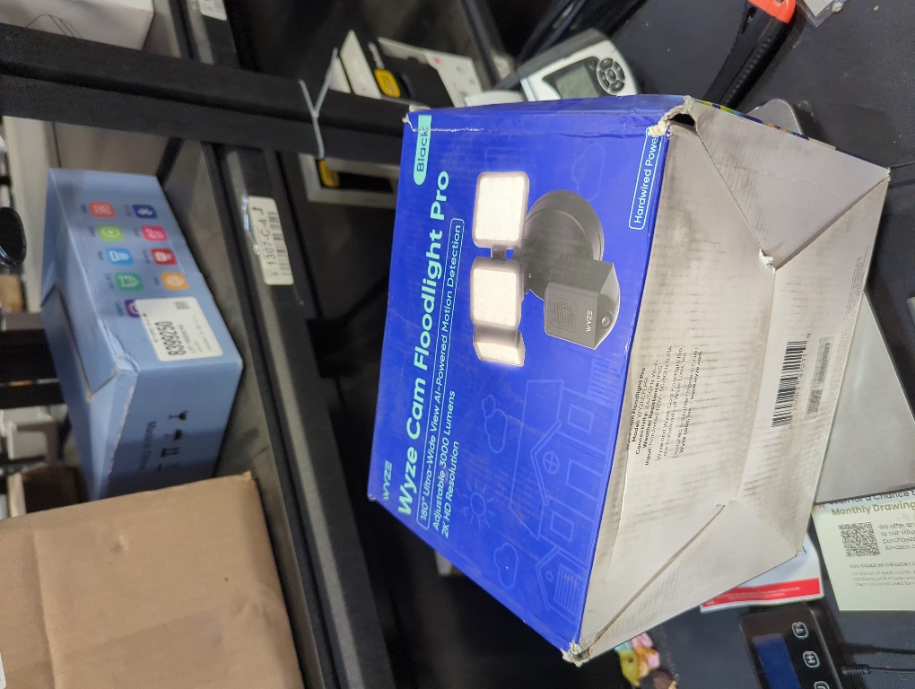 WYZE Cam Floodlight Pro combines a 180° wide-angle lens and 2.5K QHD video so you can see your yard end-to-end in more detail than ever. It relies on evolutionary onboard AI computer vision to detect motion and turns on the adjustable 3,000 lumen LED lights only from objects you select, like people and vehicles. In other words, we created a high-powered security camera with bright lights that thinks and responds like a personal home security guard-no donuts required.. Camera Connection: Wireless Cameras. Camera Product Type: Standard. Camera Resolution: 4MP. Camera Technology: IP. Camera Type: Floodlight. Color Family: Black. Color/Finish: Black. Connectivity: Wireless (Wireless Network Transmission). Features: 2-Way Audio,Built-in Flood Light,Built-in Microphone,Built-in Speaker,Smartphone Compatible,Wall Mountable,Weather Resistant,Zoom. Field of View: 180 Degrees. IP Rating: Weather Resistant. Image Sensor Type: CMOS. Included: Mounting Hardware. Indoor/Outdoor: Outdoor. Lumens: 3000. Microphone: Two-Way Audio. Night Vision Distance (ft.): 30. Night Vision Range (ft.): 30 ft. Pack Size: 1. Power Options: Hardwired. Power Source: Hardwired. Power Source: Hardwired. Product Weight (lb.): 2.85 lb. Recording Storage: Cloud,SD Card. Remote Access: Remote Access. Requires Hub?: No Hub Required. Resolution: 4MP (1440p). Returnable: 90-Day. Rotation Direction: Fixed. Smart Device Enabled: Enabled. Smart Home: Smart Home Enabled. Smart Home Protocol: Wi-Fi. Storage Capability: Cloud,SD Card. Video Signal: Digital. Voice Control Hub Required: No Hub Required for Voice Control. Voltage (V): 120 V. Works With: Alexa, Alexa, Google, Google Assistant, IFTTT. Certifications and Listings: UL Certified. Product Depth (in.): 9.09 in. Product Height (in.): 7.76 in. Product Width (in.): 10.16 in. Power Source: Hardwired. Indoor/Outdoor: Outdoor. Camera Connection: Wireless Cameras. Smart Home Protocol: Wi-Fi