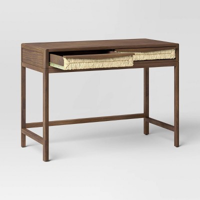 Accent your work or study area with the Withania Desk with Drawers from Threshold™. This rectangular desk comes with two drawers with a woven design to give you ample space for your essentials. Crafted from a wood with a brown finish, this desk makes a functional addition to your home. Threshold™: Looks like home, feels like you.Dimension Details:Overall Width : 42"Overall Depth : 20"Overall Height : 30"Distance between Front Legs : 39.62"Distance between Front Legs and Back Legs : 17.62"Width of drawer : 19.8"Height of drawer : 3.75"Distance Between Floor to Bottom : 23.5"Side Stretcher Height From Floor : 4.12"Rear Stretcher Height From Floor : 5.37"
