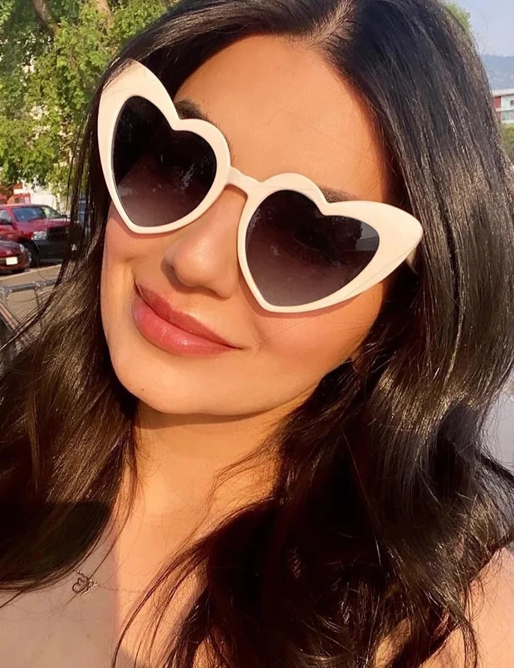 【FASHION DESIGN】Stylishly sweet and timeless, these white glasses, with their retro cat-eye shape and delicate heart-shaped frames, combine classic style with bold colors and exaggerated designs, white heart sunglasses are a must-have fashion accessory