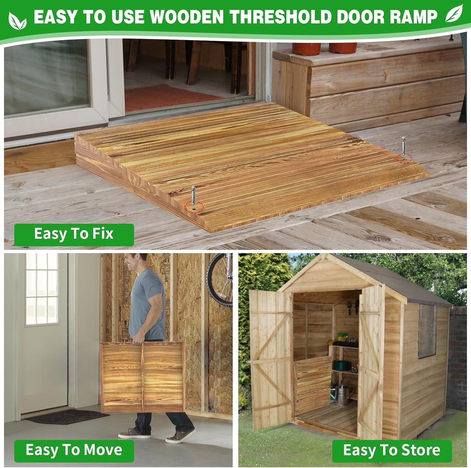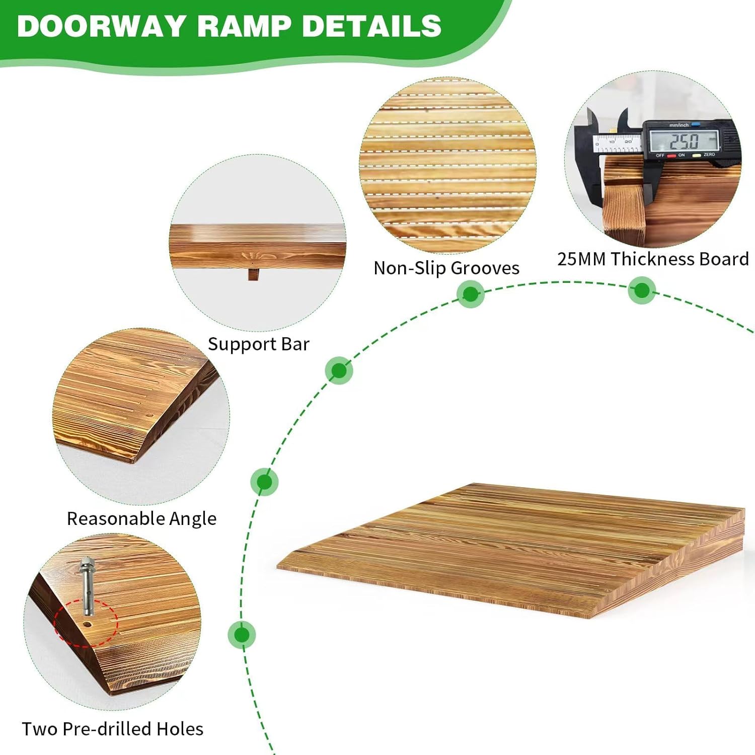 [Secure & Stable Wooden Doorway Ramp]: Featuring non-slip grooves on the surface, our ramp enhances friction and prevents slipping accidents. A support bar underneath ensures stability, allowing the safe passage of wheelchairs and carts without deformation.