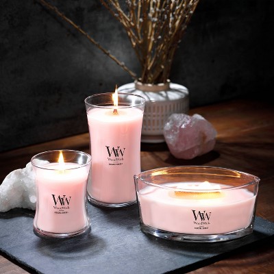 Experience the cozy comfort of a glowing fireplace anywhere in your home. The soothing crackle and long, dancing flame of WoodWick with Hearthwick Flame allows you to relive fond memories or create new ones in a warm, comfortable atmosphere. So enjoy more than just a candle, because home is where the HEARTH is. Highlights: Coastal Sunset: Sun-kissed blossoms, fresh coconut nuances, and salty ocean air capture the intrigue of the coast at sunset The wooden wick of our Hearthwick flame candles creates a long, beautiful dancing flame for fireplace-like ambiance Premium paraffin and soy waxes are blended with highly concentrated fragrances to produce a beautiful burn with no messy residue Ellipse shape creates a wider opening for a fully melted wax pool that produces a more consistent fragrance experience Specifications: Scent: Sea Salt, Coconut, Ocean Dimensions (Overall): 3.5 Inches (H) x 7.7 Inches (W) x 4.6 Inches (D) Weight: 16 Ounces Features: Lidded Container Material: Glass Number of Wicks: 1 Approximate burn time: 100 Hours Material: Soy Wax Blend