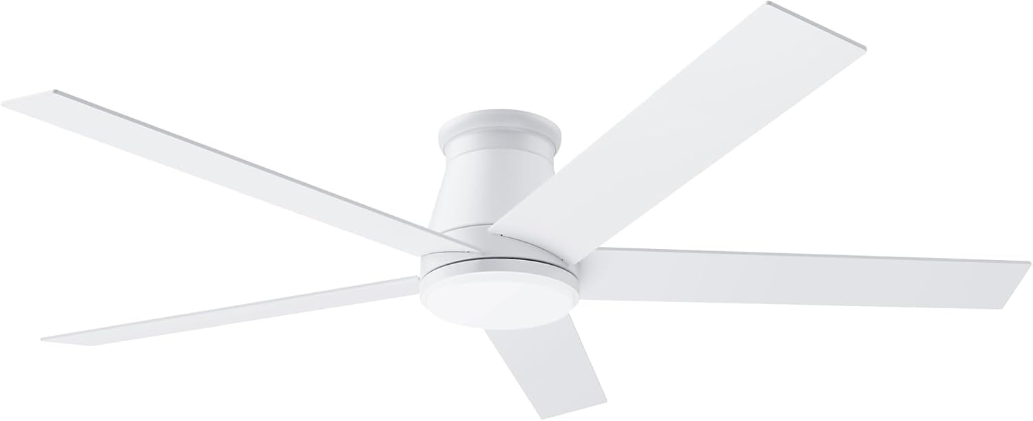 wurzee 60 inch Ceiling Fan with Light, White Flush Mount Ceiling Fan 6 Speeds DC Reversible Motor, 5 Blades, Timing, Dimmable, Memory Function for Bedroom, Kitchen, Patios