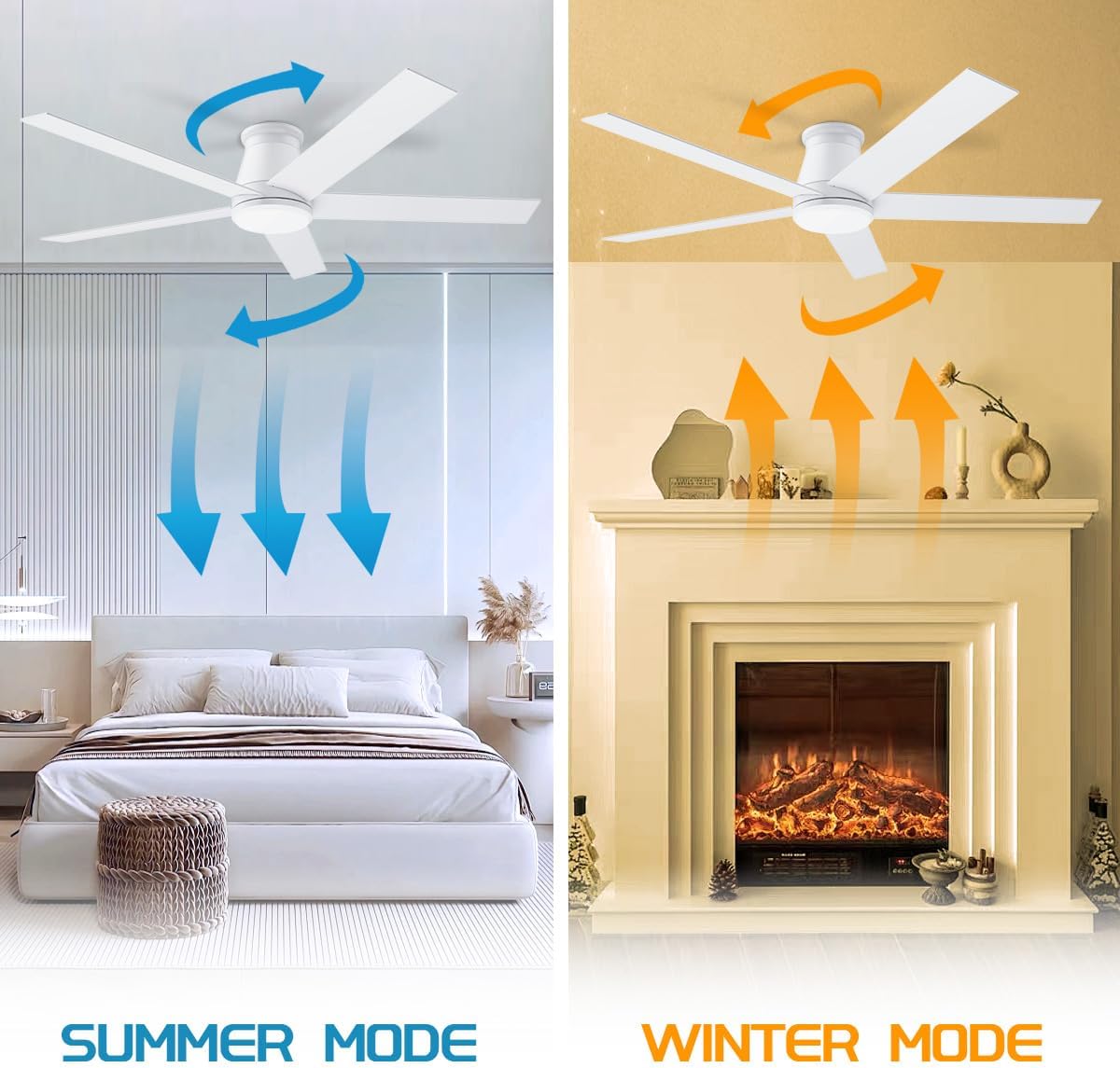 Quiet Reversible Motor: In the summer, the rustic ceiling fan with lightforward mode allows air to flow downward to keep you cool and 30 decibels of sound for a comfortable sleeping environment. In the winter, the reverse mode allows air to flow upward so that the warm air produced by the room's heating equipment is evenly distributed throughout the room. You can use the low profile ceiling fan with light all year round.