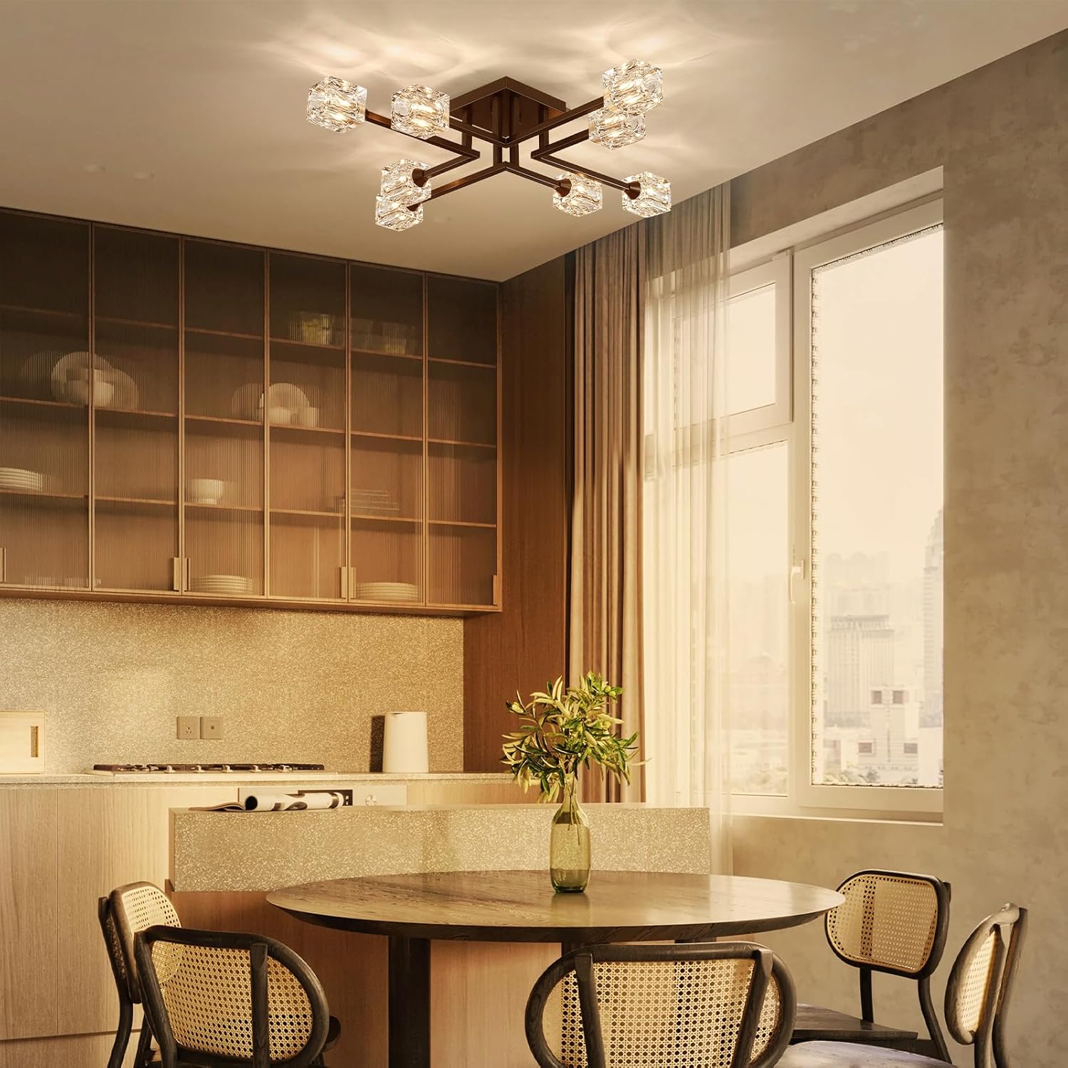 [Dimmable Lighting Fixture]: This semi flush mount ceiling light includes 8-light sockets, allowing you to install any G9 base bulbs. Our farmhouse ceiling light is suitable for LED bulbs and halogen bulbs. It also supports dimmable bulbs and dimmer switches (Not Included), enabling you to customize the lighting according to your preferences.
