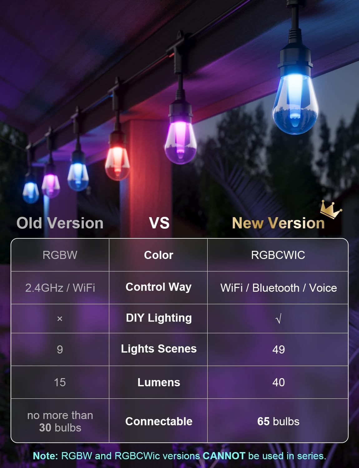 RGBCWIC Lighting Effects: DIY each LED bulb with millions of color options. Adjust white tones from 2700K warm glow to 6500K cool light, and enjoy dimmable brightness from 1-100% for the static lighting. Ideal smart outdoor lights for decoration.