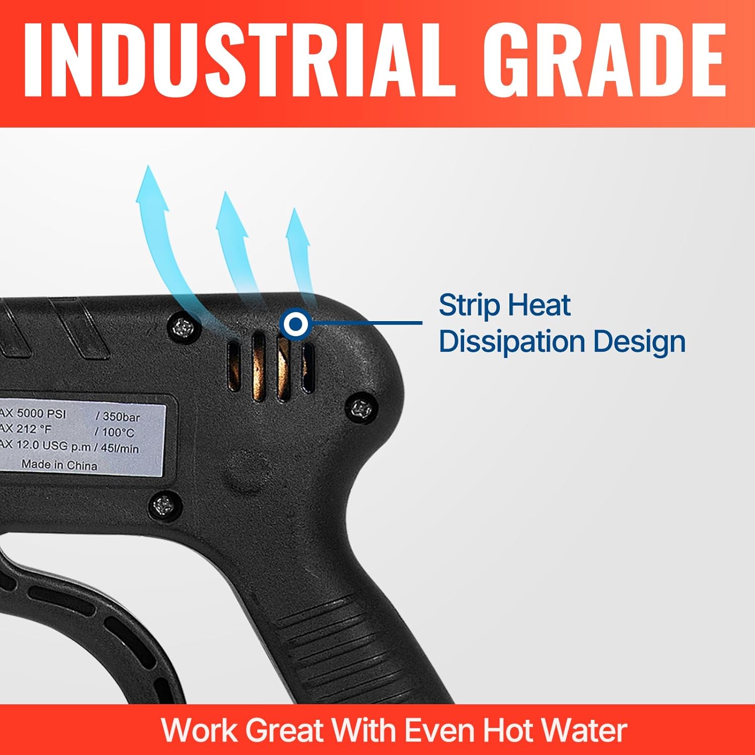 [More Compatibility] The power washer gun includes a 3/8" swivel quick plug and M22-14mm male coupler, providing a complete set for various cleaning purposes. This pressure washer handle supports up to 5000 PSI and 12 GPM, suitable for both commercial, home, and professional use, Compatible with Dewalt, Ryobi, Troy Bilt, SIMPSON, CRAFTSMAN, Champion, MTM, Greenworks and More.