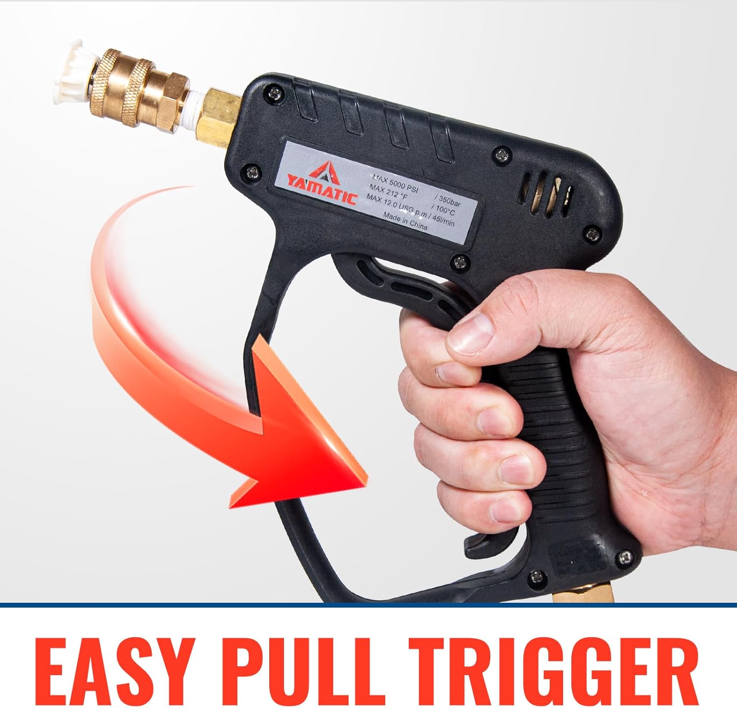 YAMATIC Short Pressure Washer Gun with Swivel, 5000 PSI Power Washer Wand Stubby Trigger Handle with 3/8" Plug & M22-14mm Male Inlet, 1/4" Quick Connect Outlet for Foam Cannon Car Wash