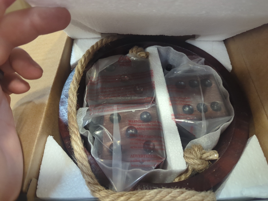 New open box for inspection Handcrafted from kiln-dried New Zealand pine. This Yardzee & Yardkle Giant Dice Set comes with 6 Giant dice and score cards for your favorite yard games, yardzee and farkle. Now featuring our durable solid wood pine bucket with rope handles. Hand polished with light oak varnish for resiliency against the elements and style that will last a lifetime.. Product Weight (lb.): 4.10 lb. Returnable: 90-Day. Product Height (in.): 7.28 in. Product Length (in.): 8.46 in. Product Width (in.): 8.46 in