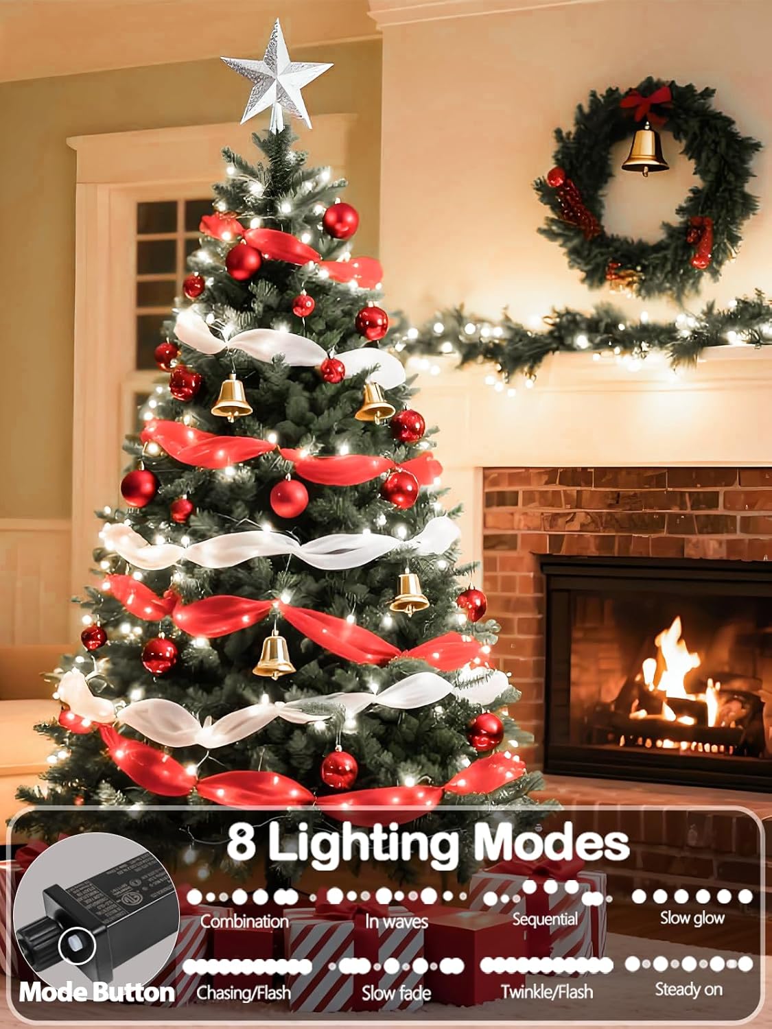 Unique 8 Lighting Modes: This twinkle lights have 8 modes to fit different occasions, moods, feelings, holidays, festivals, anniversaries, etc. (Combination, In waves, Sequential, Slow Glow, Chasing/Flash, Slow fade, Twinkle/Flash, Steady on). Adjust the lighting modes by pressing the round button on the adapter.