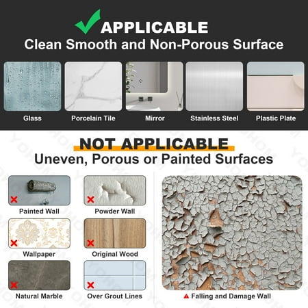 Bathroom towel rack wall mount only work on Non-porous Smooth Flat and Clean surface, such as glass, porcelain tile, acrylic, stainless steel, corian walls etc. Bathroom towel bar no drill don’t work on dusty, breathable, uneven, porous, painted, matte, textured or curved surfaces such as PAINTED WALL, CERAMIC TILE, WOOD, unfinished MARBLE, GRANITE, Natural Stones, Mosaic or Travertine Tiles, Plastered Wall, Lime Wall, Wallpaper, Frosted Glass, over Grout Lines etc. Overall length of suction towel rail is 22inch/55cm, actual hanging length of single bathroom towel rod is 18.5 inch/47cm, please refer to the second photo to reserve your position before purchasing the kitchen towel holders wall mount. Stainless Steel Towel Bar Wall Mounted - High-quality brushed stainless steel of shower towel holder wall mount is anti-corrosion & anti-rust, moisture proof, suction cups towel holders provides exceptional strength and durability. Easy to Install Towel Bar for Shower Wall - No tools, no holes, push firmly on the hanger shaft of kitchen towel bar, turn the knob cover of suction towel bar by hand until hear a “click” and feel a substantial lock of the locking suction, then the installation of shower suction towel bar is complete. Space Saving Bathroom Wall Towel Bar - Suction towel bar for shower is easy to keep a hand towel on the wall within reach without cluttering counter space. Removable and re-position bathroom towel holder for wall without any holes or sticky residue on your wall, practical addition to your bedroom, bathroom, kitchen and glass shower, laundry or anywhere else. Remember to wash bathroom towel hanger suction and dry natural before reusing the suction shower towel bar.