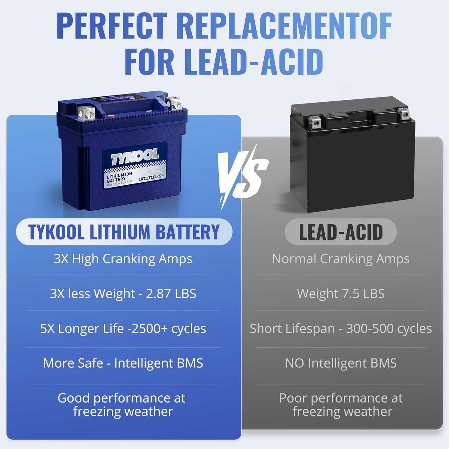 Upgrade to Lithium Battery: A perfect replacement for Lead-Acid battery YT12B-BS. No sulfation. Requires no activation, no acid, no maintenance, and no water needed. And it comes fully charged and ready to install