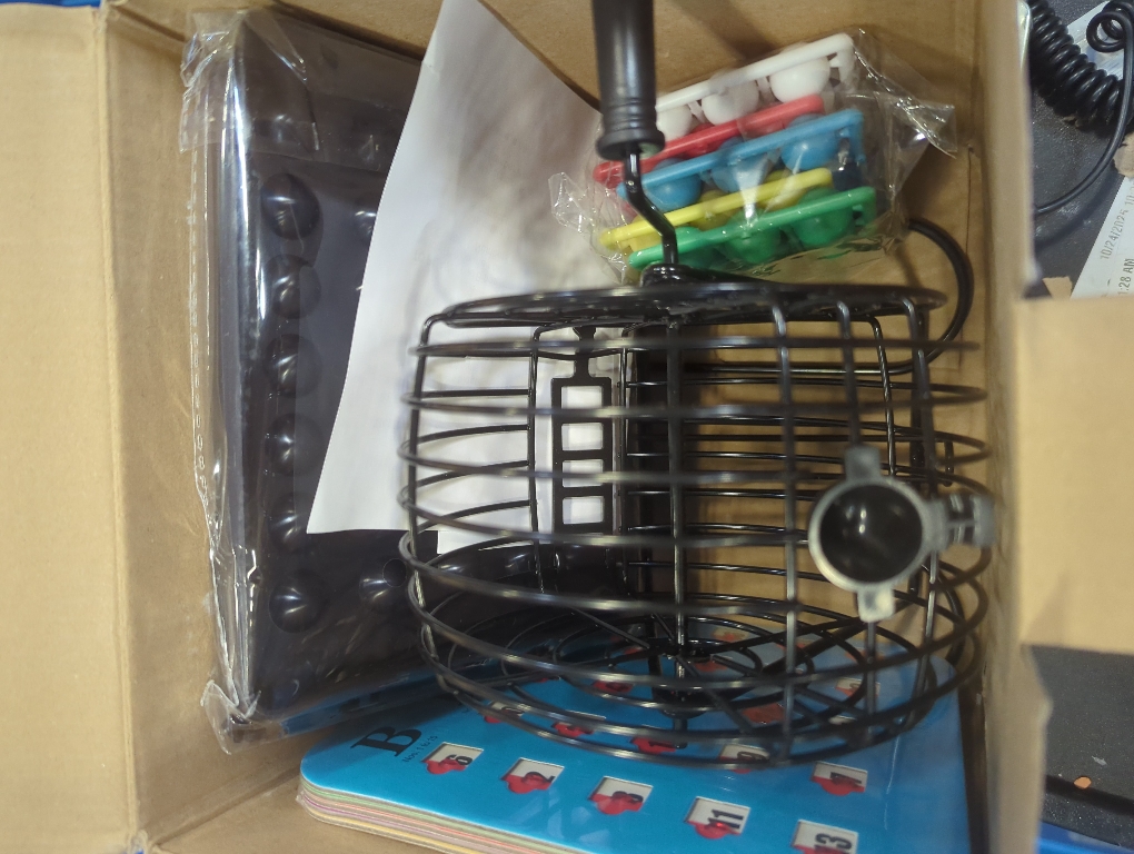 Materials: The bingo cage is made of welded metal wire for extra toughness, which is equipped with sturdy automatic random ball selector. The Bingo board is made from two sturdy plastic pieces. The bingo balls are made of high quality colored plastic and the Shutter Slide cards are made of extra thick stitched cardboard.