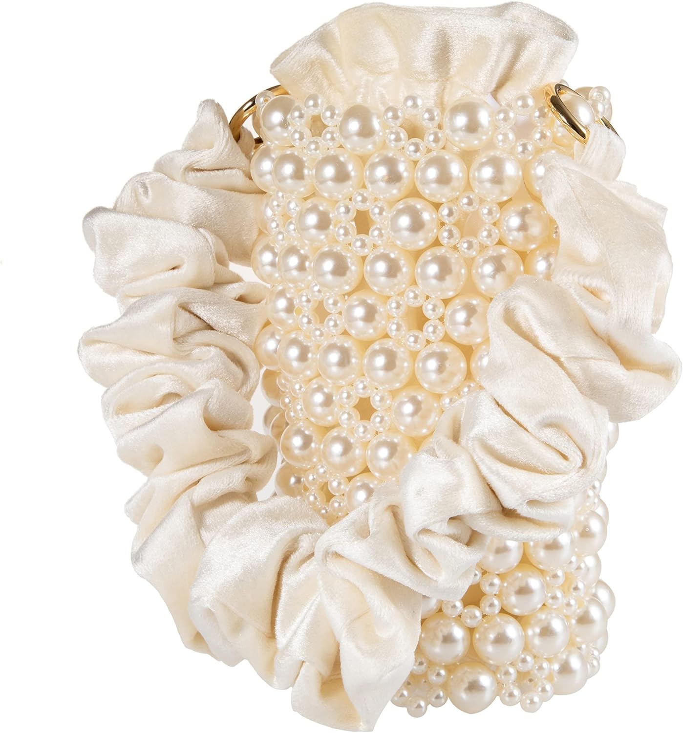 YUSHINY Women Faux Pearl Beaded Evening Pleuche Bucket Handle Bags with Velvet Lining for Wedding Party