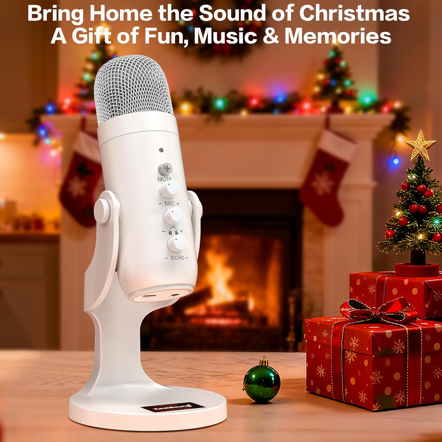【Perfect Gift Choice — Especially in White】 This elegant white microphone blends style and performance in a stunning design. Its smooth, pearlescent finish shimmers beautifully under the light, creating a dreamy, high-end look that elevates any setup. Thoughtfully crafted, it makes a perfect gift for girlfriends, boyfriends, daughters, sons, young creators, or anyone who values both great design and crystal-clear sound. Ideal for Christmas, birthdays, Valentine’s Day, or any special occasion, it inspires creativity and adds a touch of sophistication to streaming, singing, gaming, podcasting, or TikTok content creation.