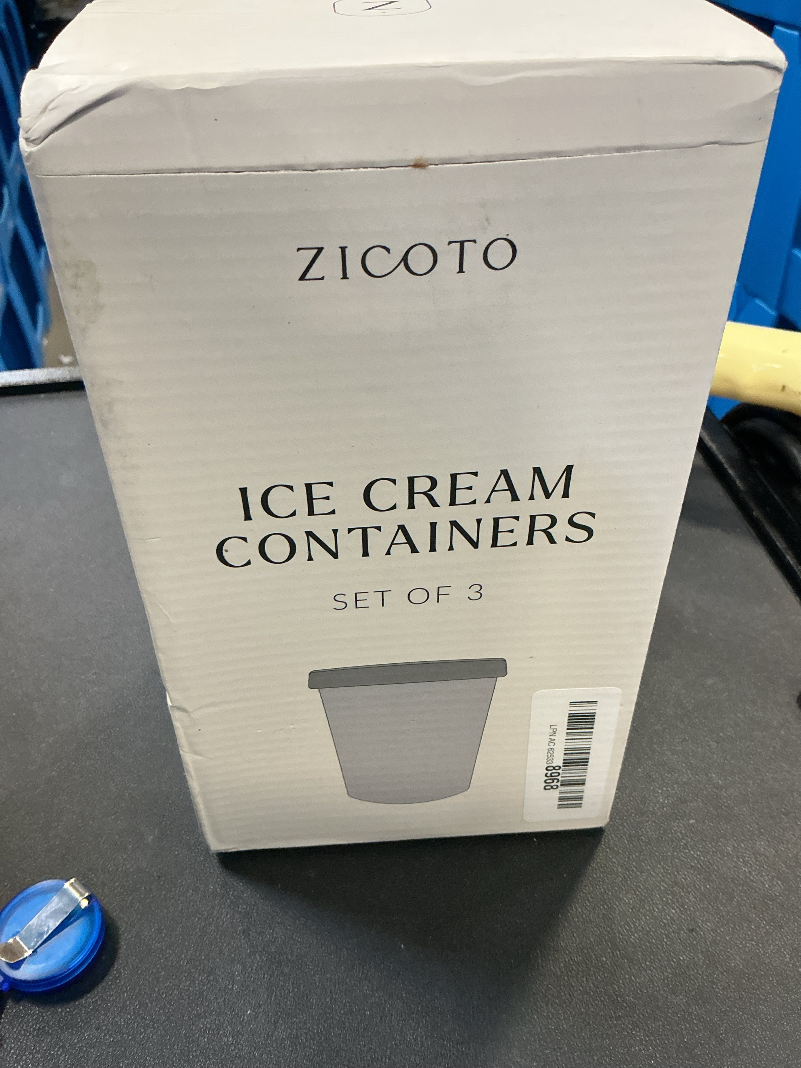 ZICOTO Set of 3 Reusable Ice Cream Containers 1 Quarts ea. - Perfect for Homemade Sorbet, Frozen Yogurt Or Gelato - Stackable Storage Pint Containers, Stickers And Lids Stores Easily In Freezer