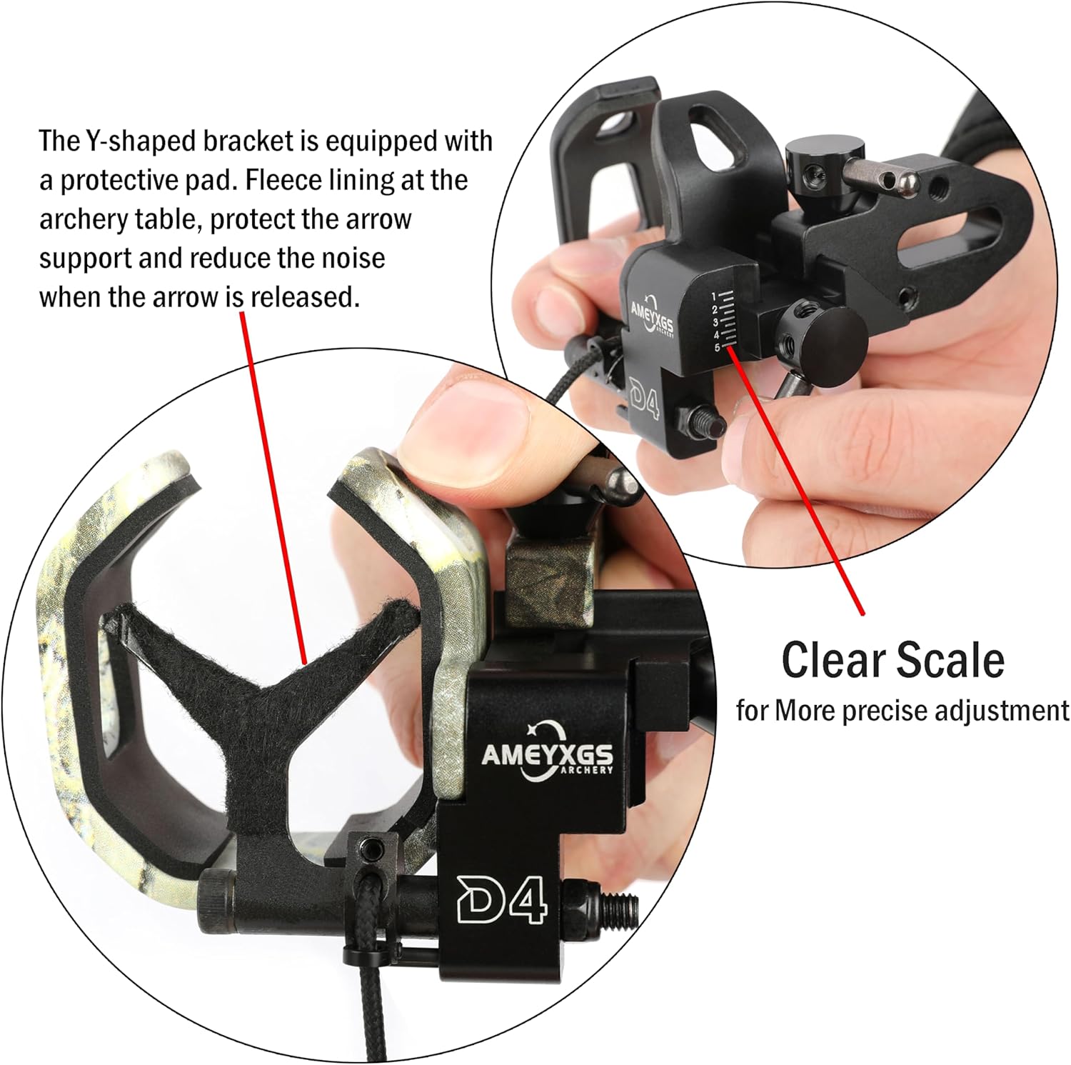 【High Quality Material】Precision aluminum,surface painting process, corrosion resistance.The Y-shaped bracket is equipped with a protective pad.Fleece lining at the archery table,protect the arrow support and reduce the noise when the arrow is released.